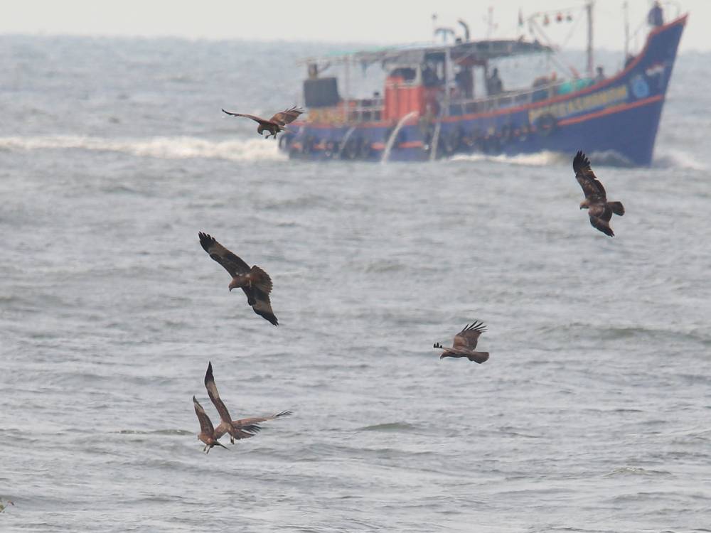 Close to sunset I observed the birds fishing in the waves of ebb, especially Kites and Terns. Tens of Kites were fishing in sunset. The full absence of Gulls in the ocean coast is unbelivable.