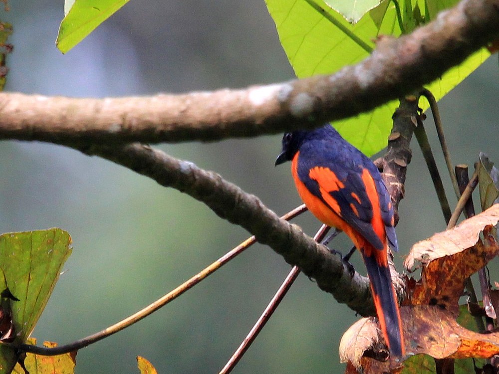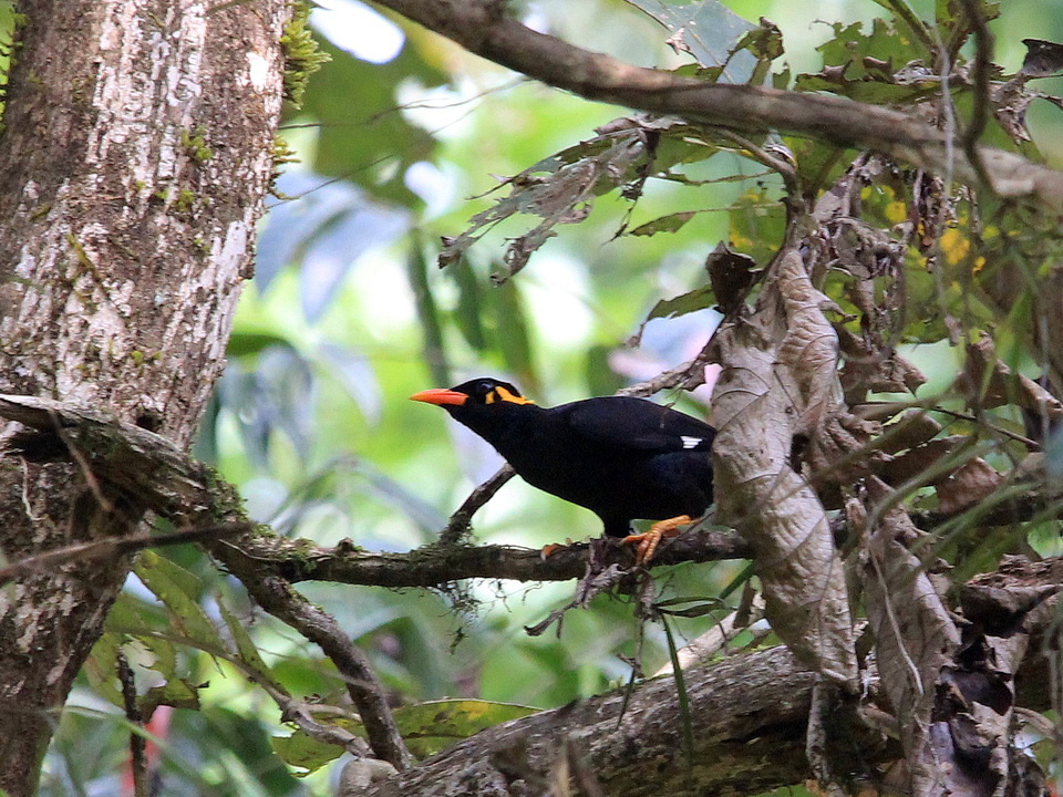 Today morning was very misty, but some of birds were identified by silhouettes. The crow-sized birds with broad wings, soaring like Bee-eaters and perching in large trees were recognized as Black Baza. I found position near large tree and was waiting Bazas, most of time Bazas were soaring behind the branches or perching inside dense leaves. But some times I had a chance to take photos. Unfortunately weather was mist, I think in another case my photos could be better, but I happy because I found Black Baza. During the waiting of Bazas I saw other birds – Black-crested Bulbul (subspecies with red throat). Grey Wagtail, Blyth's Reed Warbler, Brown-breasted Flycatcher etc. After Baza's photo session I go to the light forest with the tribal settlement. By the road I flushed couple of Malabar Trogons, and I took photo of frontal male. Yesterday I only once saw frontal Trogon, most of time these birds preferred to show me the back. The light forest is not so tall, birds living here are well visible. Numerous Racket-tailed and Bronzed Drongos, Asian Fairy-Bluebirds, Malabar Woodshrikes were catching insects. Asian Brown and Brown-breasted Flycatcher were noticed by one bird of each. In dense forest I some times saw Black-rumped Flameback, but in light forest the Greater Flameback only. All the time in this forest I was hearing the sound (mostly whistle) of Hill Mynas.