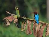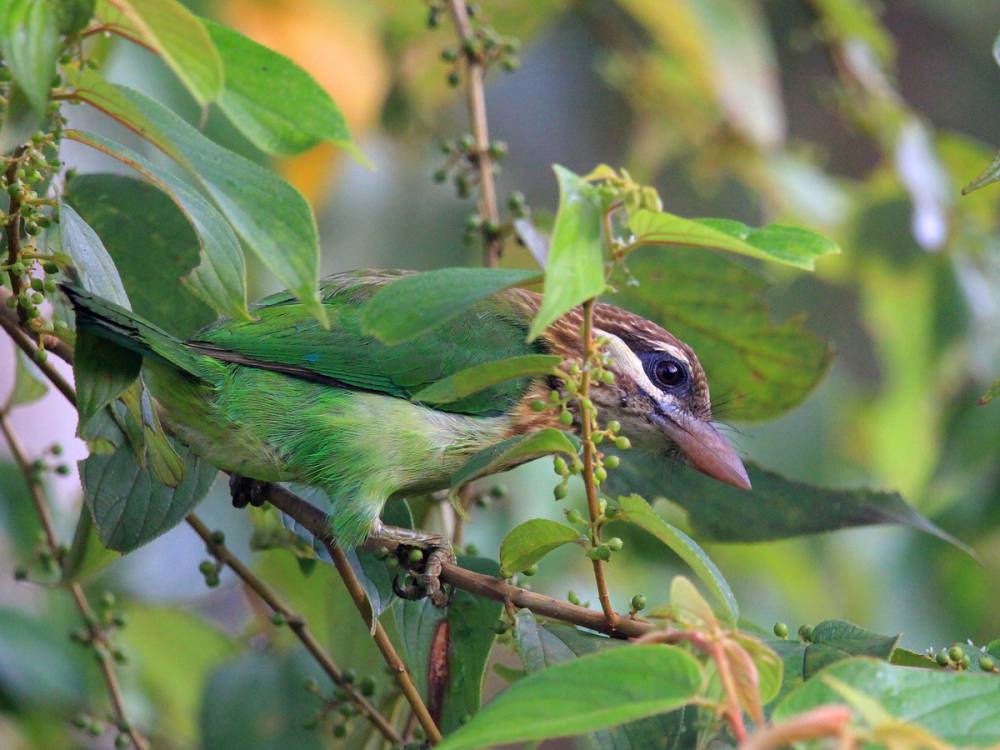 My main target of today's trip is Heart-spotted Woodpecker. I want to take better photos than I made last visit. Woodpecker (and Black-naped Oriole too) was not full body on photo, but only parts of it. But I photographed Oriole next day, so I need to find only Woodpecker. Therefore I immediately turned to the island where I met it previously. But the first my bird was the male of Grey Jungle-Fowl, very nice and calm bird. I heard later its sound many time, this sound don't similar to the domestic cock sound, but I sure that was Fowl sound when I heard it. I waited and looked for Woodpecker some times but unsuccessfully. So I didn't make good photos of Woodpecker, but also added the Orange-headed Thrush to the list of bad-photographed birds.Then I go to the mountain part of Sanctuary. There is silence all the road, if you go by the broad main trail. Therefore I had to turn to secondary trails especially in case when this trails bordered by the dense little trees or bushes. Firstly I found [...... read more ]
