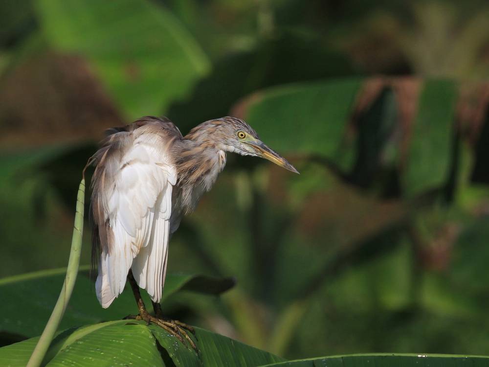 I was going to reach the known to me spot near airport by another road, also I was going to start my birding some earlier than in previously day. At 7am many people were going to the job, some of kids were going to school. There were mist in the open areas. In the mist I took the photo of Little Cormorant perching in banana tree. Banana is very nice background to the birds; any bird looks very nice on the banana leaf. Also in the morning road I found my first lifer, the Purple-rumped Sunbird. Three or four birds flew off from the tree crown and began to feed in tall grass. Firstly I tried to take photo of female bird, then male which was more calm model, and more beauty of course. I later photographed these Sunbirds in banana plantation too. Also during the road I twice flushed Parakeets but can't to take photo.In the little village located among the banana and coconut plantations there was the quite active birds movement. I didn't go deep to village because I didn't want to worry the [...... read more ]